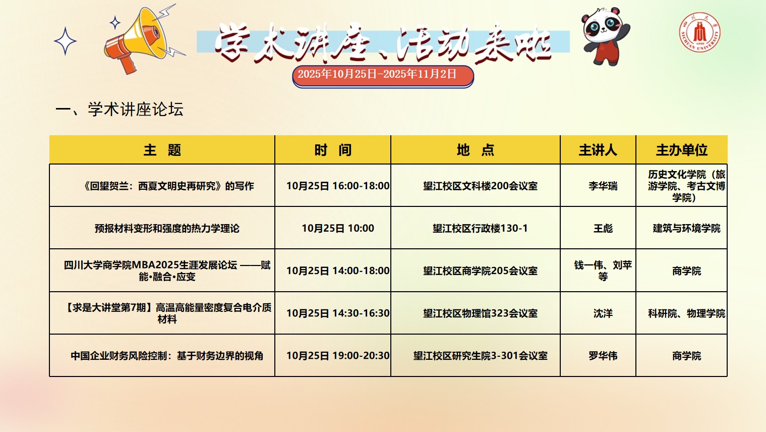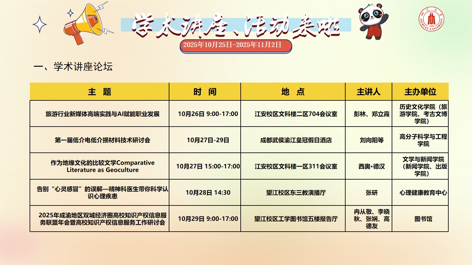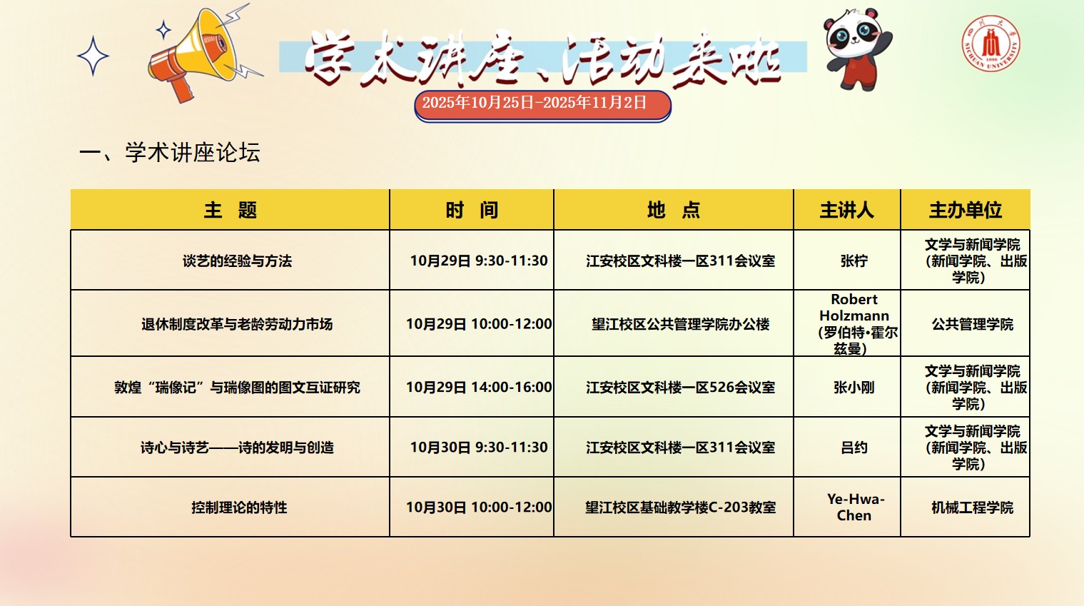 四川大学2025年10月25日-2025年11月2日校园文化活动预告