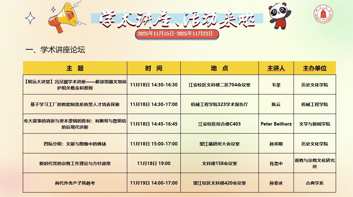 四川大学2025年11月15日-2025年11月23日学术讲座和校园文化活动预告