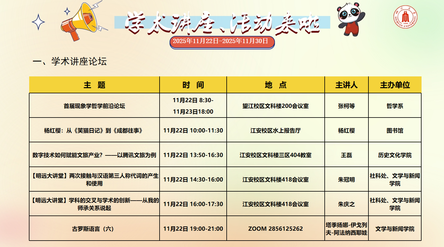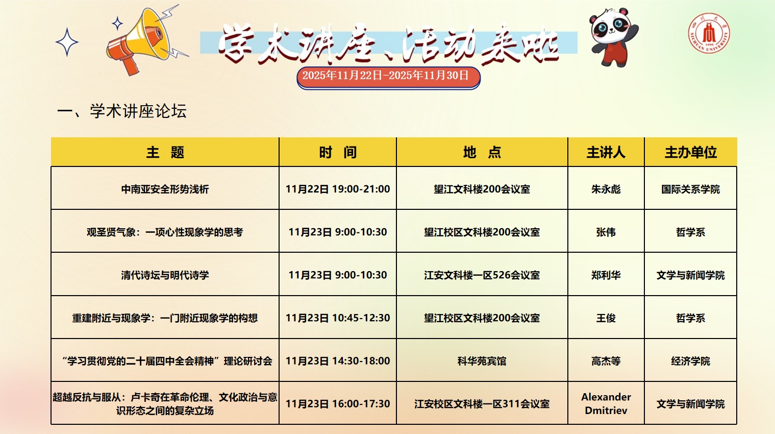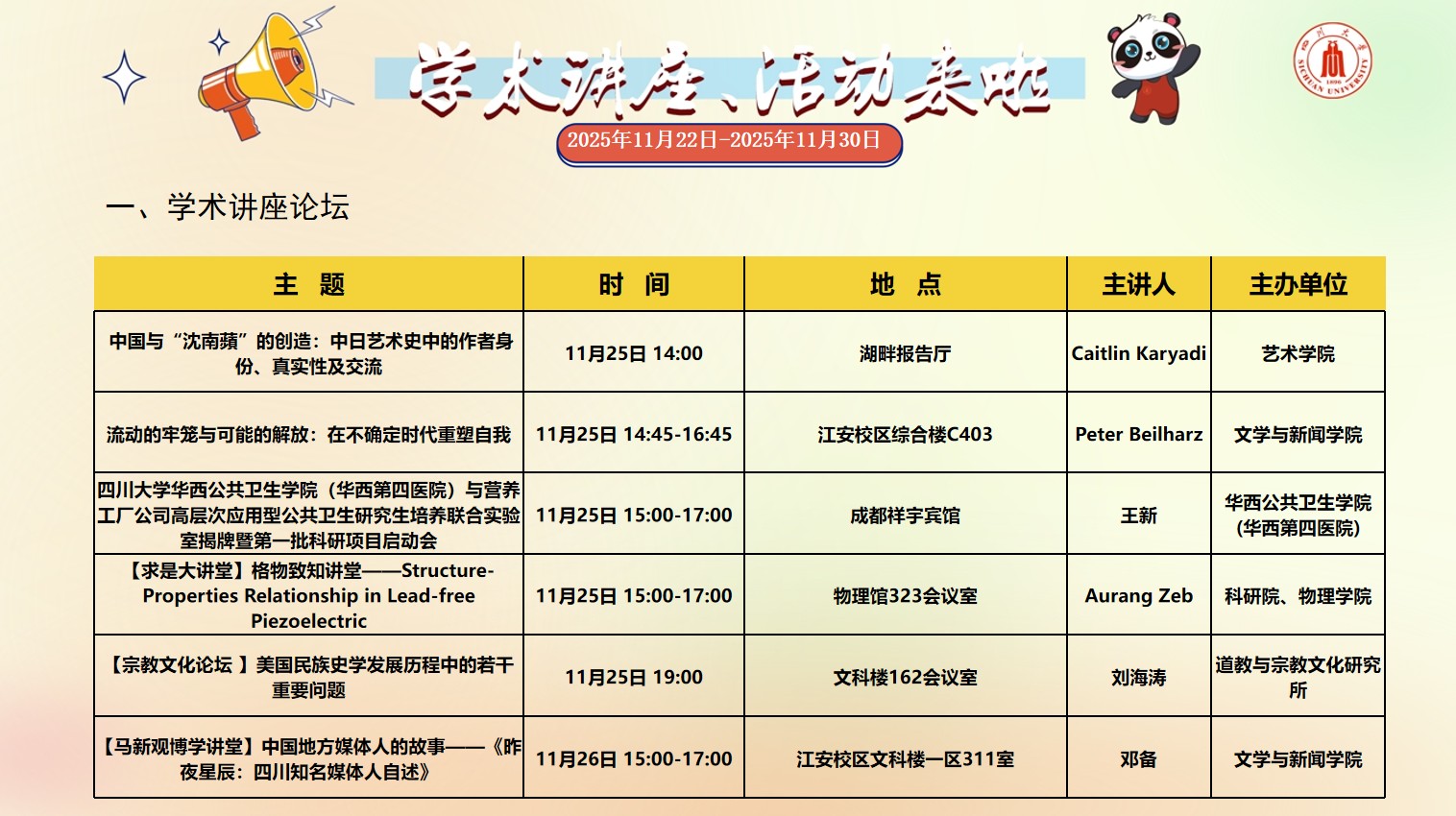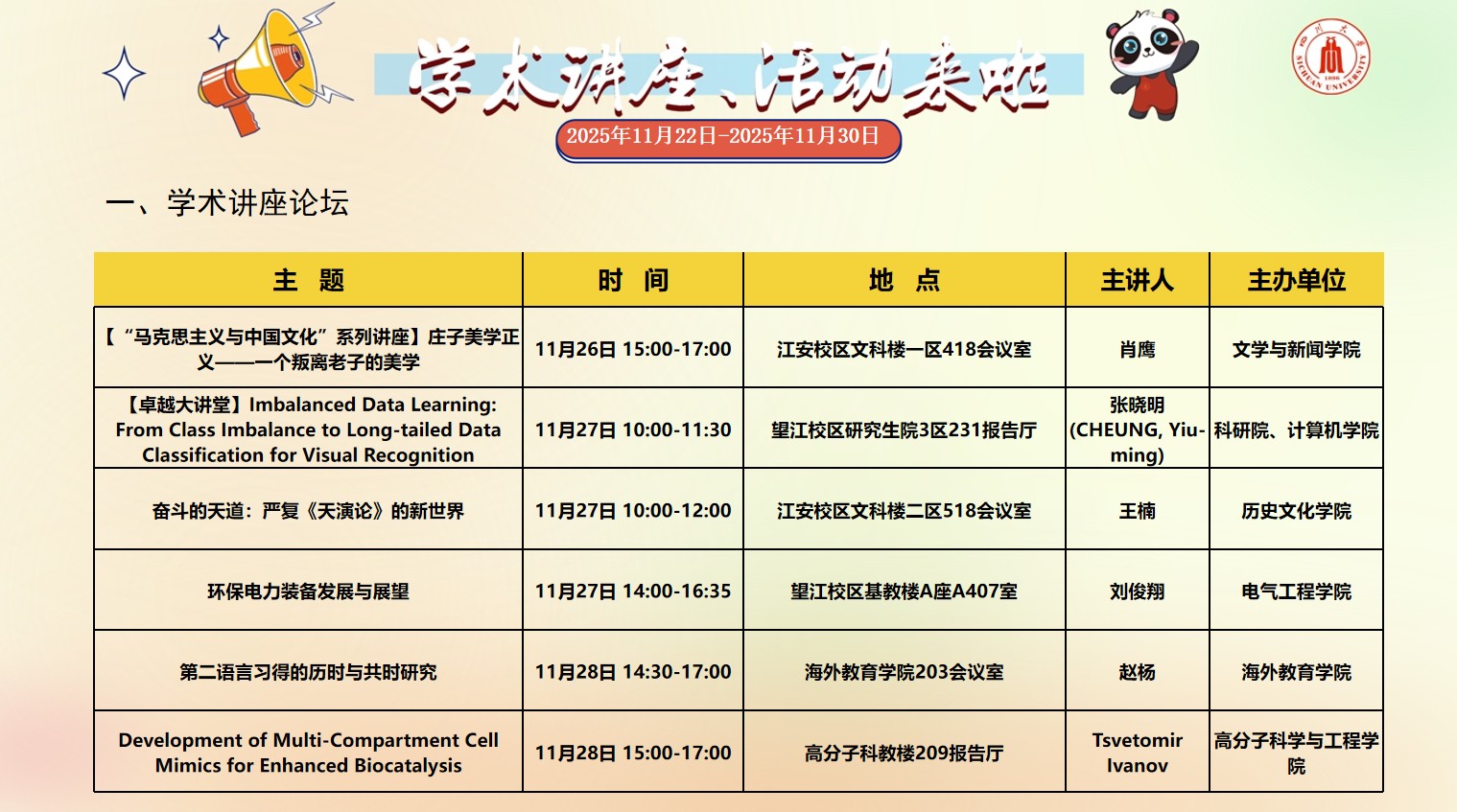 四川大学2025年11月22日-2025年11月30日学术讲座和校园文化活动预告