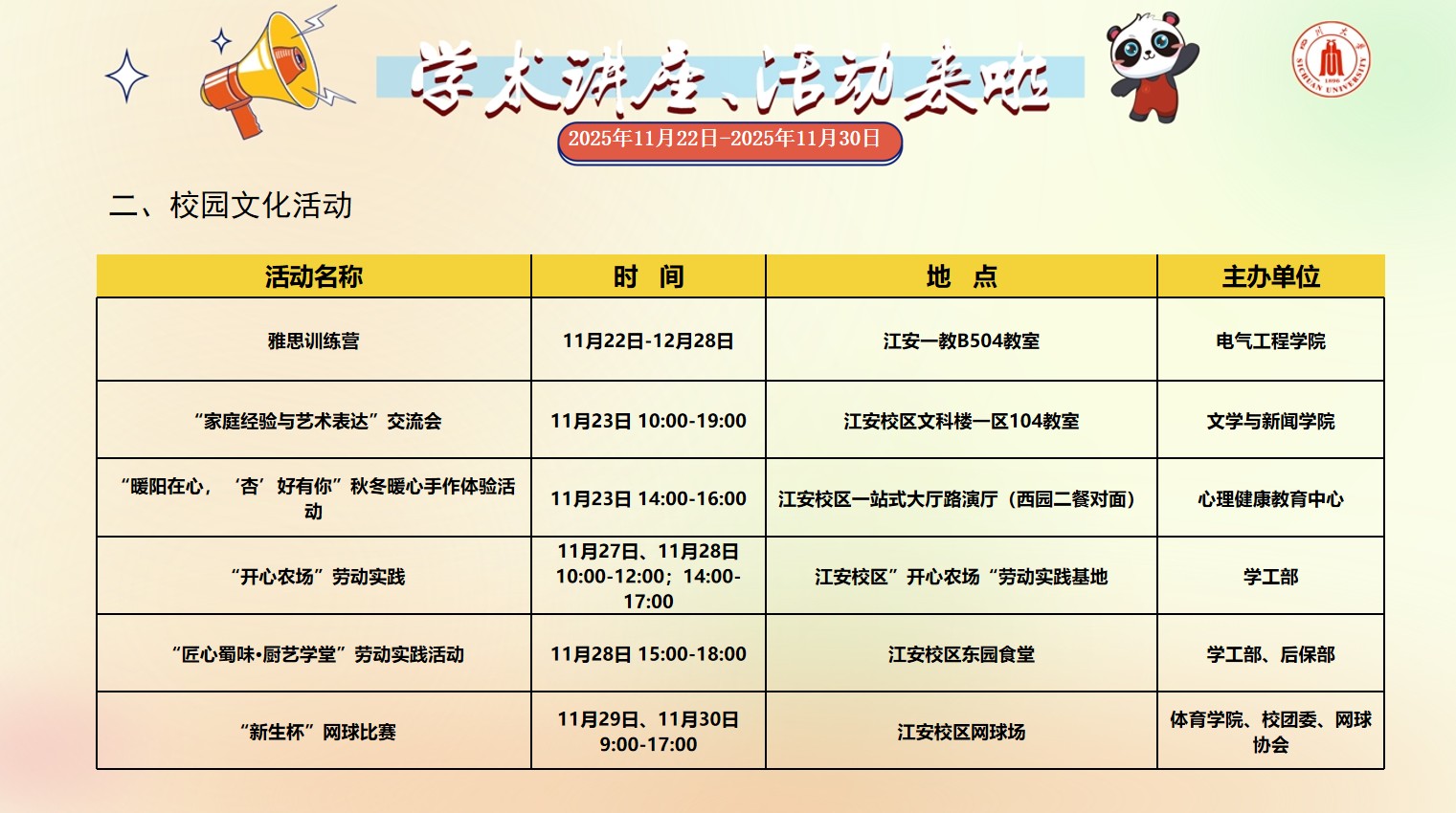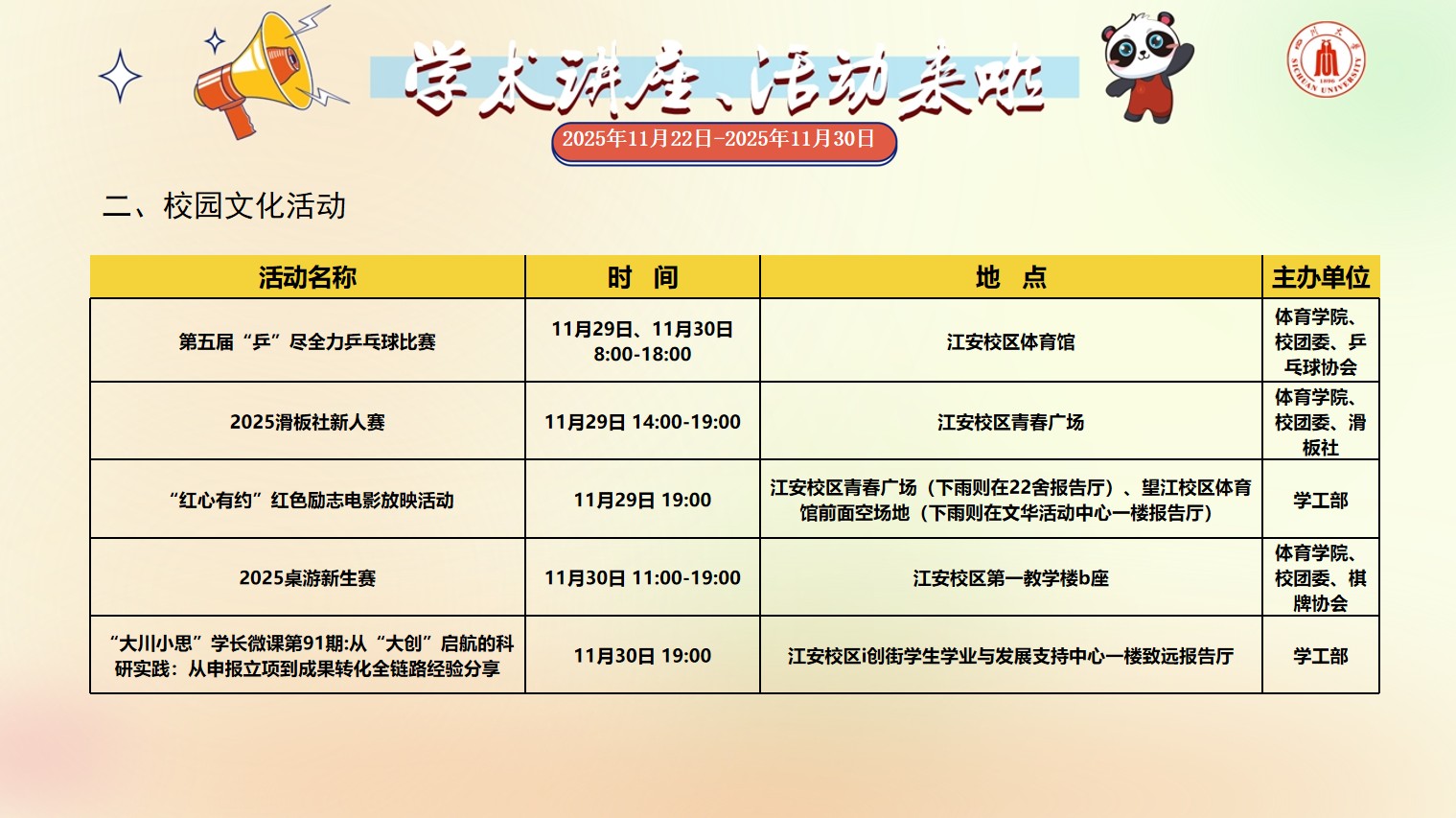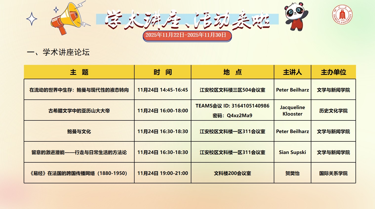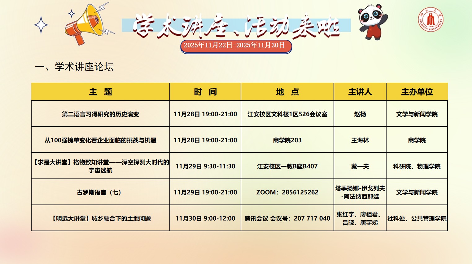 四川大学2025年11月22日-2025年11月30日学术讲座和校园文化活动预告