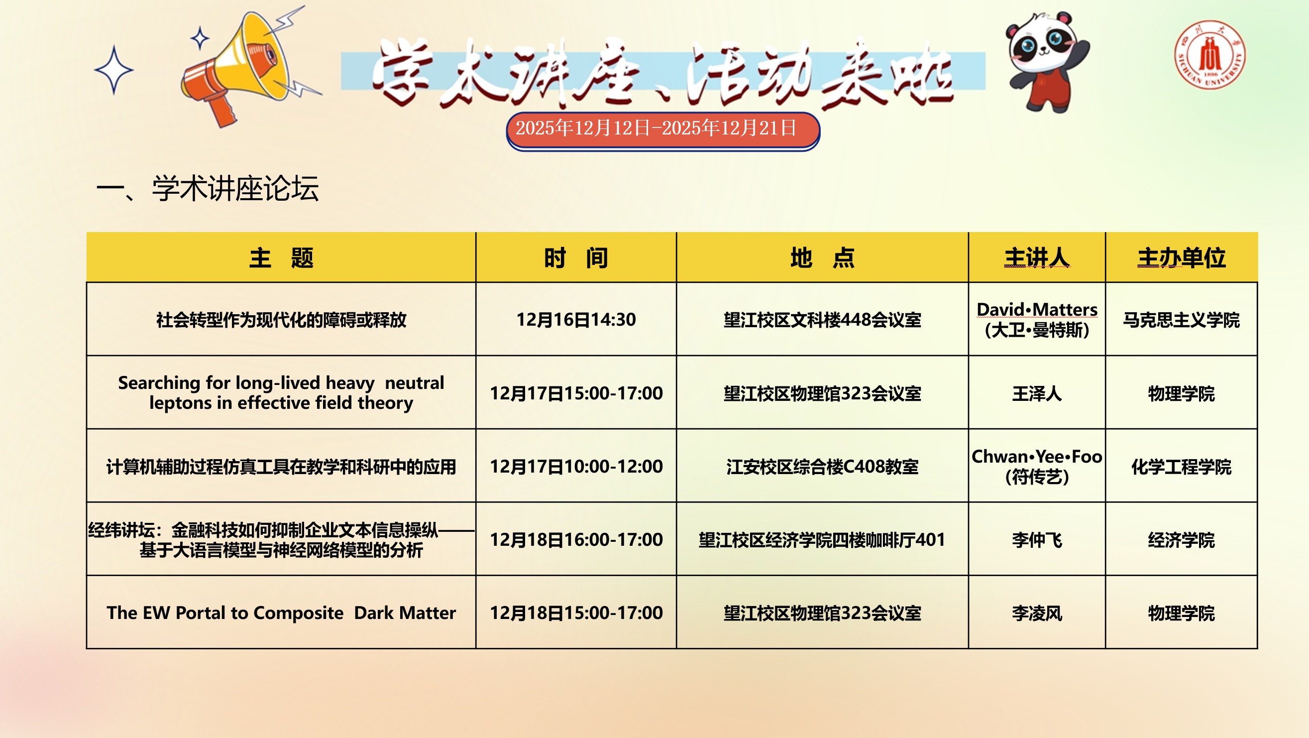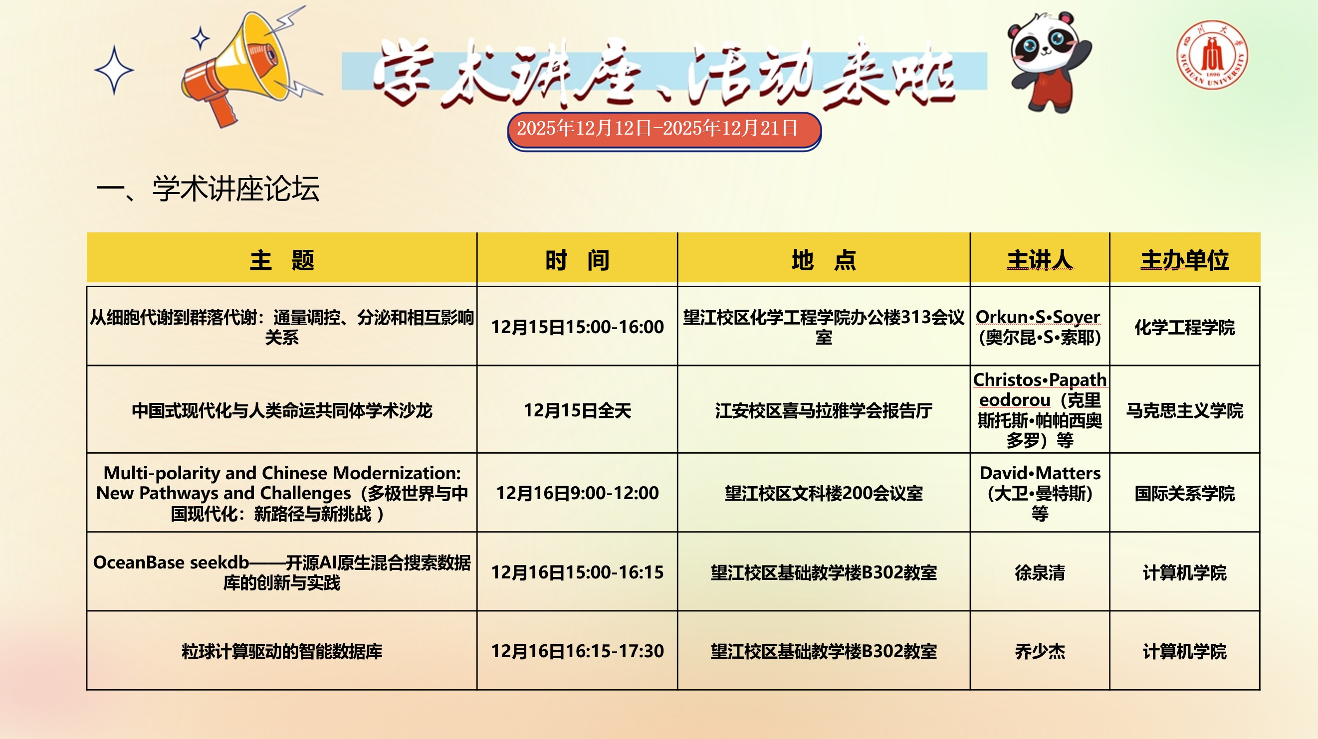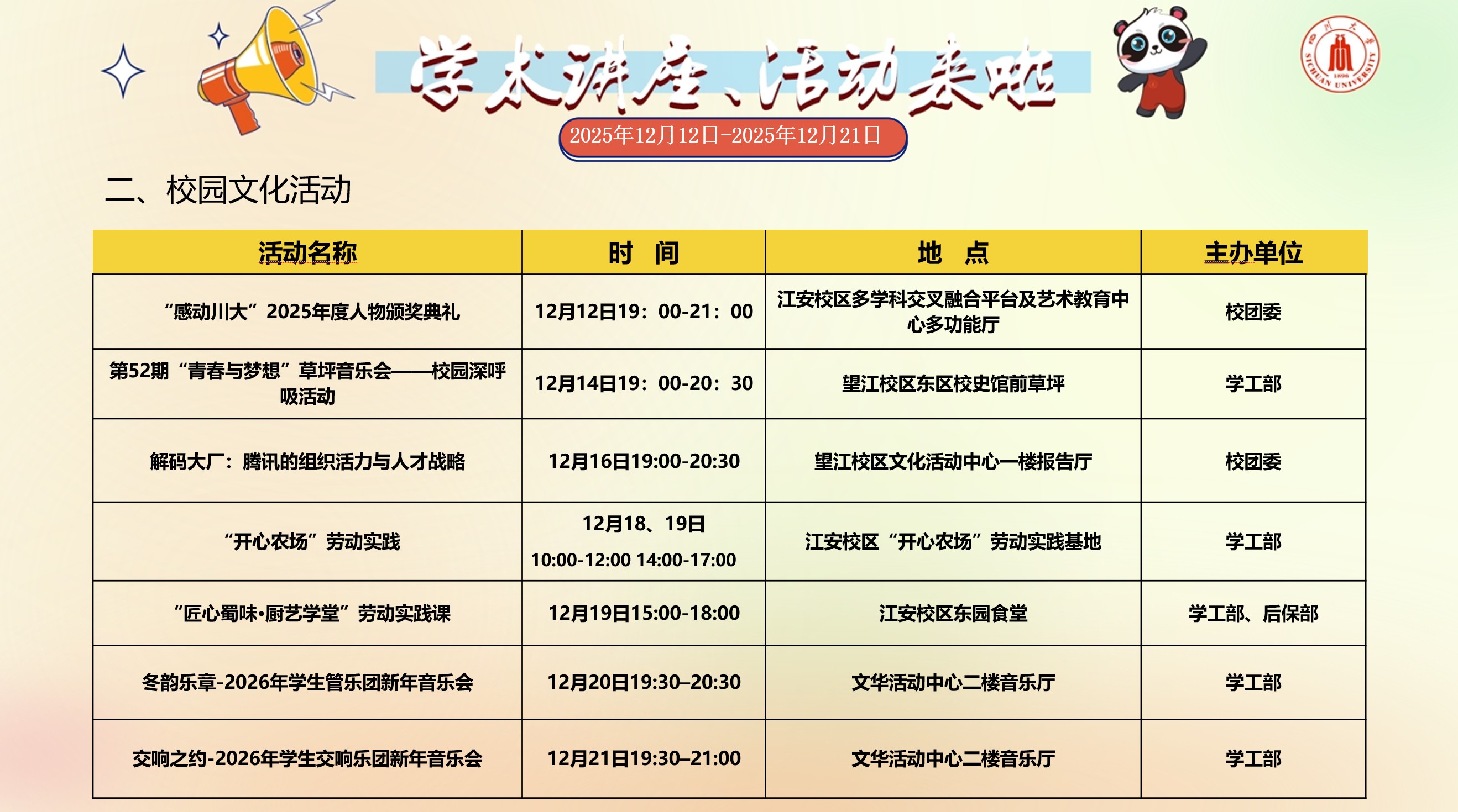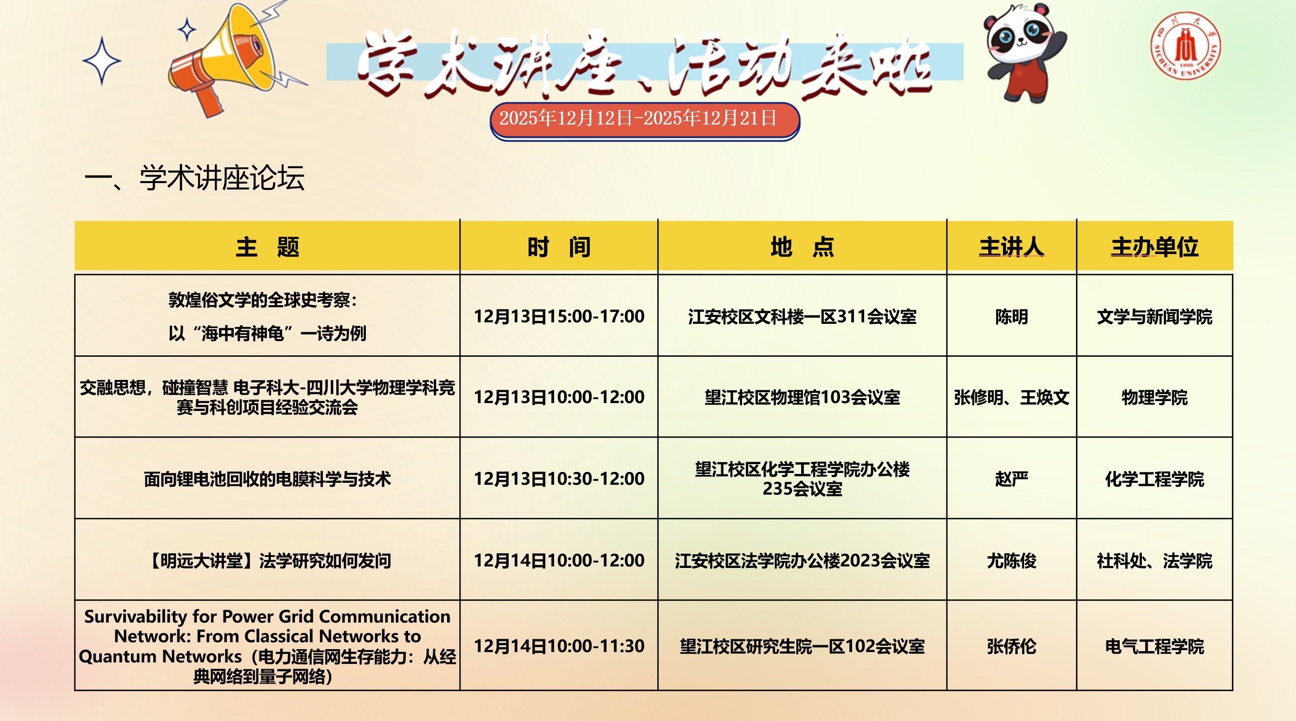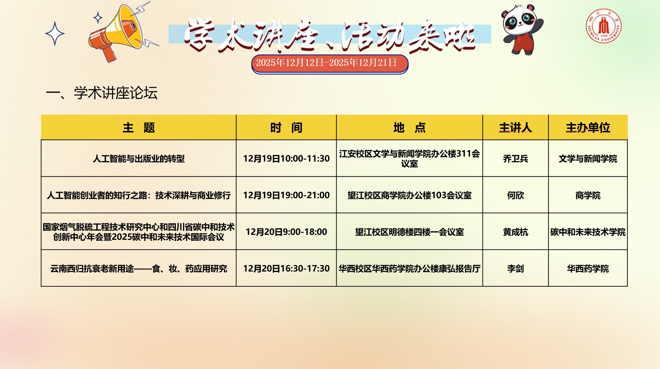 四川大学2025年12月12日—12月21日学术讲座和校园文化活动预告