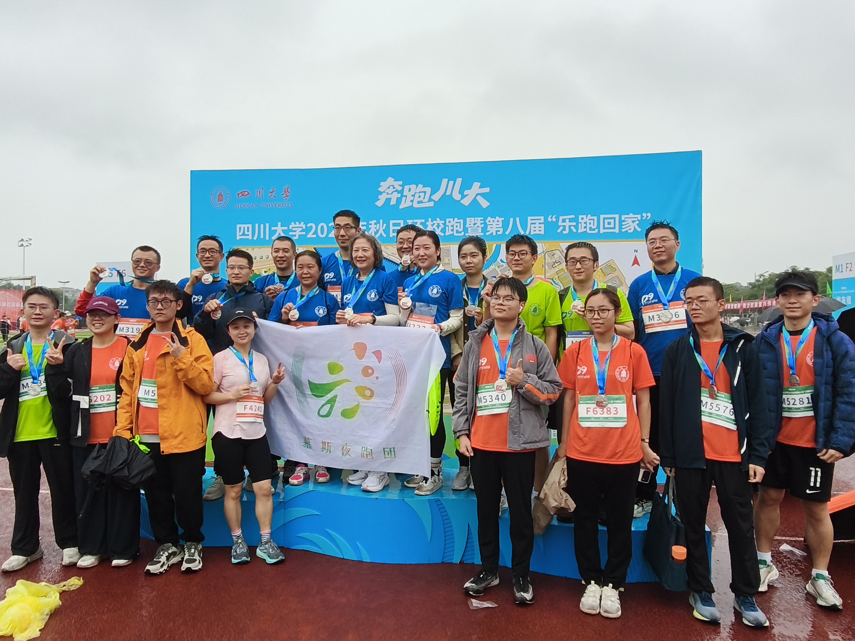 教工组和学生组参赛队员意气风发,冒着绵绵秋雨,携手跑过美丽的江安校区。天气虽冷,但阻挡不住建环人奋步前进的热情。