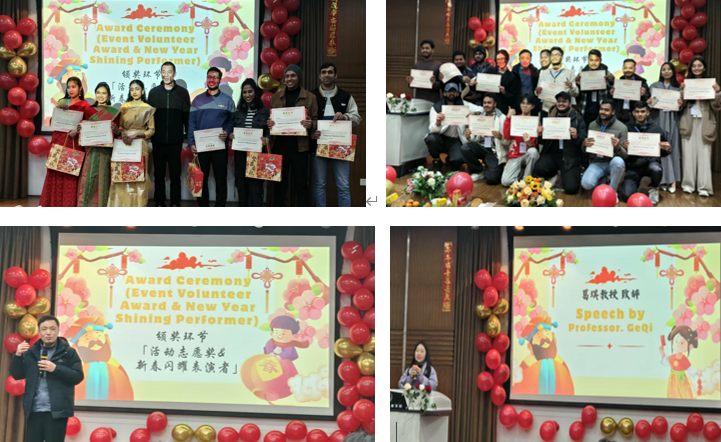 晚会中,各国留学生联袂献上多项节目。经典歌曲、传统舞蹈展现异域文化魅力,动感表演点燃全场气氛,互动游戏拉近彼此距离。现场欢笑声、喝彩声不断。晚会还特别为志愿者和表演者颁发“活动志愿奖”“新春闪耀表演者”证书,表彰其辛勤付出与精彩表现。