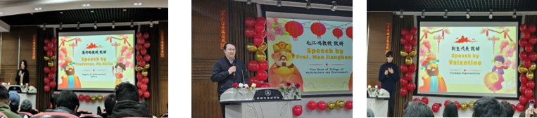 蒲诗璐首先致辞,向参与活动的师生送上新春祝福,充分肯定了举办活动的意义,表示通过晚会将有效促进国际交流与育人、助力新生融入校园,同时搭建中外学子跨文化沟通良好平台,寄语留学生们珍惜交流机会、增进彼此情谊、实现共同成长,并对DB电竞