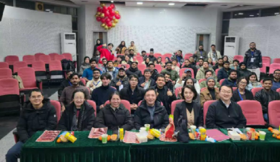二楼报告厅举行留学生新春暨迎新晚会。学校国际合作与交流处副处长蒲诗璐、来华留学生负责人罗浔科长,DB电竞