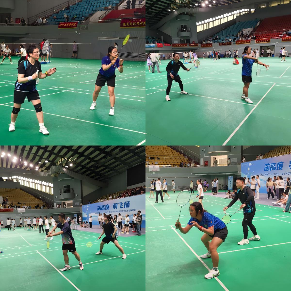 4月11日至12日,四川大学“运动正青春”——“芯原杯”2026年研究生师生羽毛球联赛在望江校区体育馆举行。由杨胜担任领队,欧阳金龙担任教练,董娜、王倩娜、盛超、梁林、钟声5位教师及王秋芷、杨庆煜、郭丰毓、陈思、李宜洋5位学生组建师生联队参赛,最终获得16强成绩。