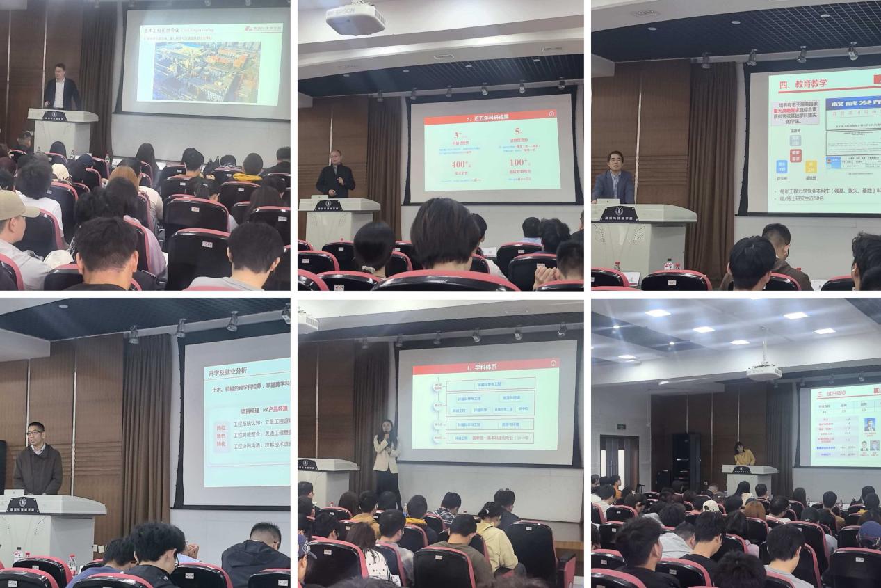 宣讲会上,力学科学与工程系、土木工程系、环境科学与工程系分别围绕专业发展历程与特色、师资队伍、人才培养方案、教育教学成效、优势科研方向、专业发展前景、深造与就业情况等进行了系统的介绍,也针对学生提出的问题进行了专业解答。